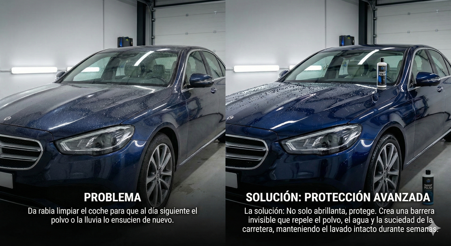 "Nuestra fórmula de nanopolímeros sella la pintura a nivel molecular. A diferencia de las ceras normales, crea un escudo que garantiza un brillo espejo y protección extrema."