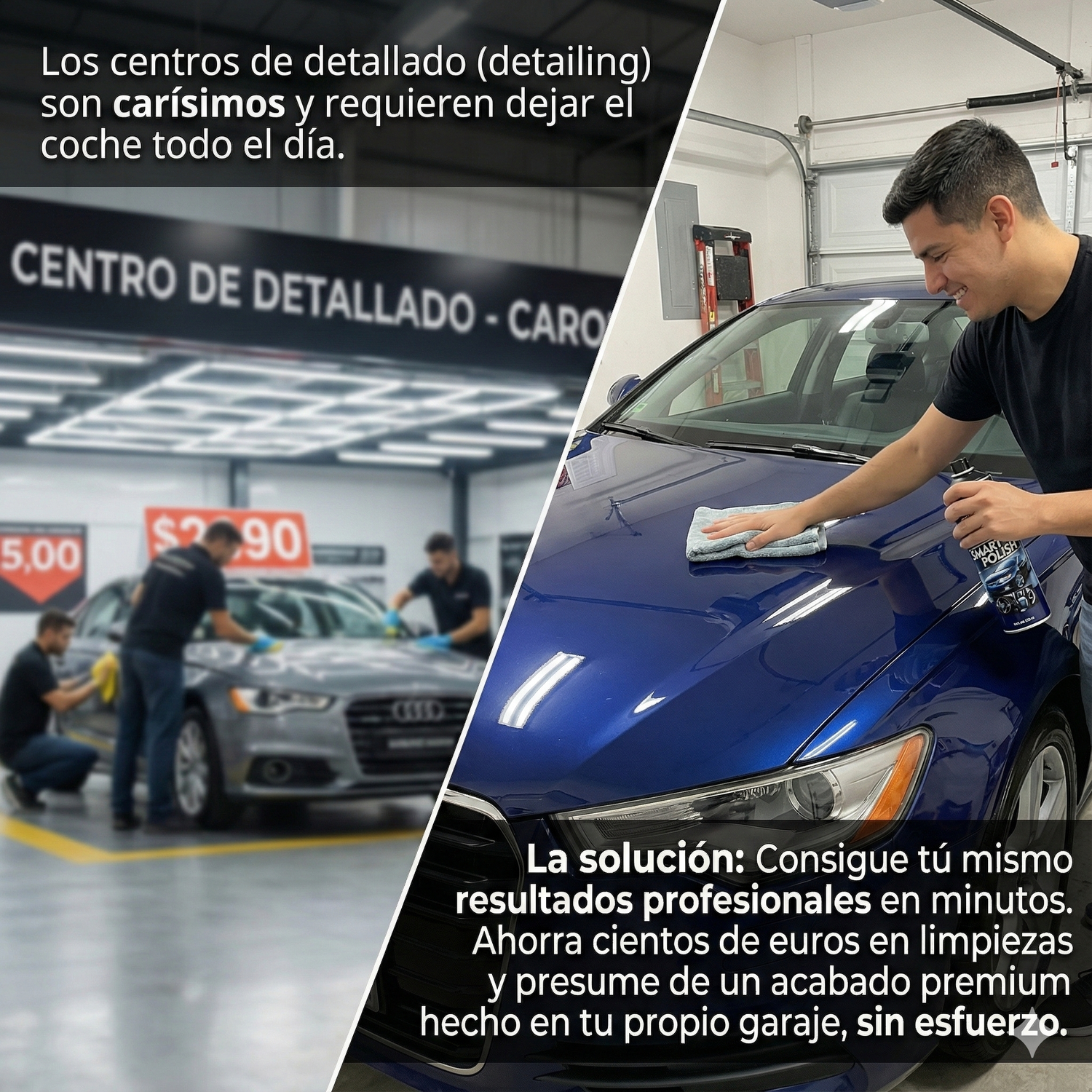 Olvídate de pagar cientos de euros en detailing. Consigue un resultado profesional en tu propio garaje, rápido y barato.